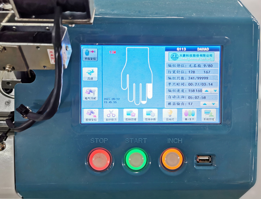 采用大豪高速智能電控系統,配置7英寸全彩觸摸屏,系統支持針筒高速正反轉,一體化機箱使維修管理十分方便。在機器連網的情況下,通過手機APP可以遠程掌控工廠生產情況,查看任意時間段的訂單,故障總體狀況,花樣文件,產量在線管理。