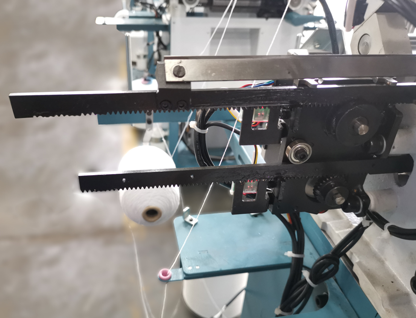 步進電機控制叉刀、剪刀傳動,大量減少傳動部件,提高了編織效率,并且可以任意精確控制叉刀、剪刀位置,為不同類型手套的編織提供了新的可能。